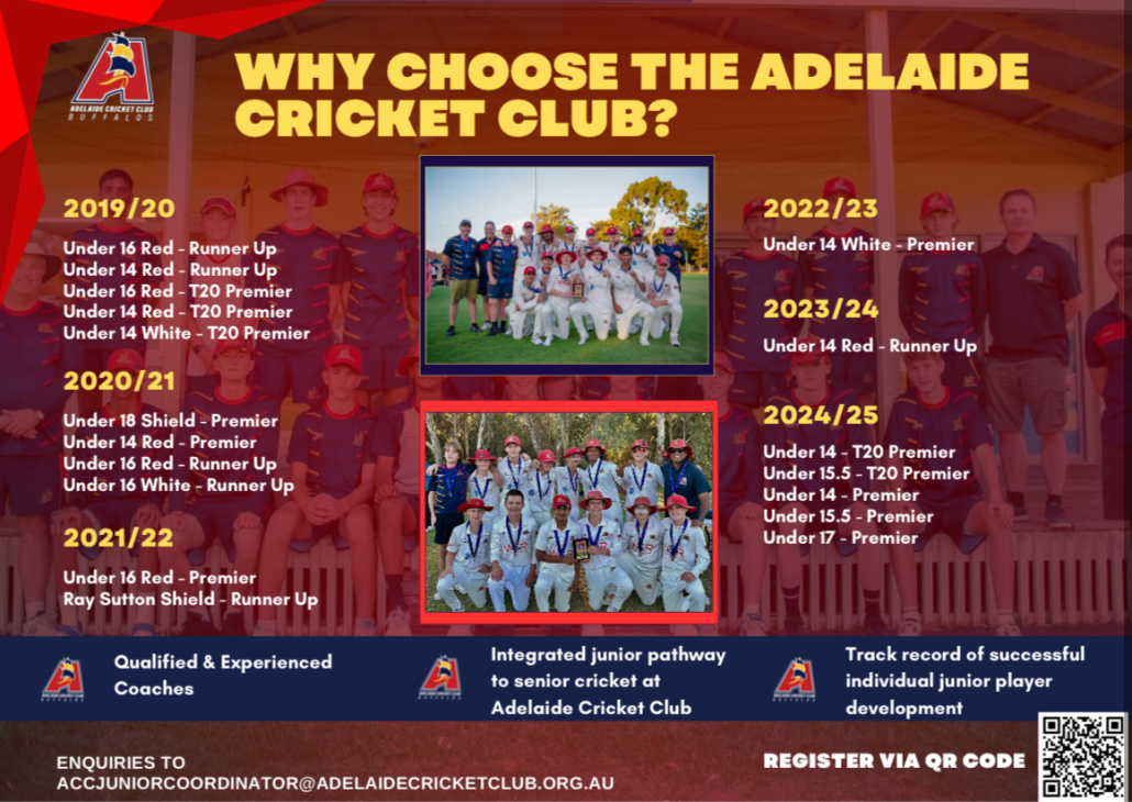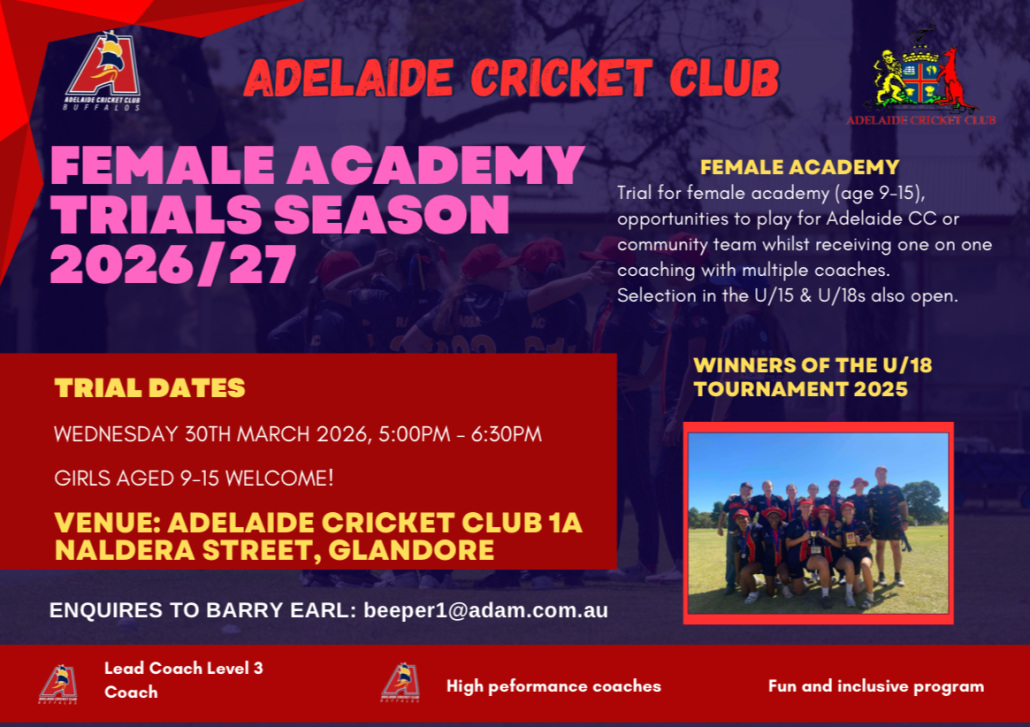 We acknowledge the Kaurna people, the traditional custodians of the land on which the Adelaide Cricket Club is situated. We acknowledge First Nation people’s ongoing spiritual connections, land care and cultural history that has existed here for many thousands of years, and still does to this day. We offer our respect to elders past and present.