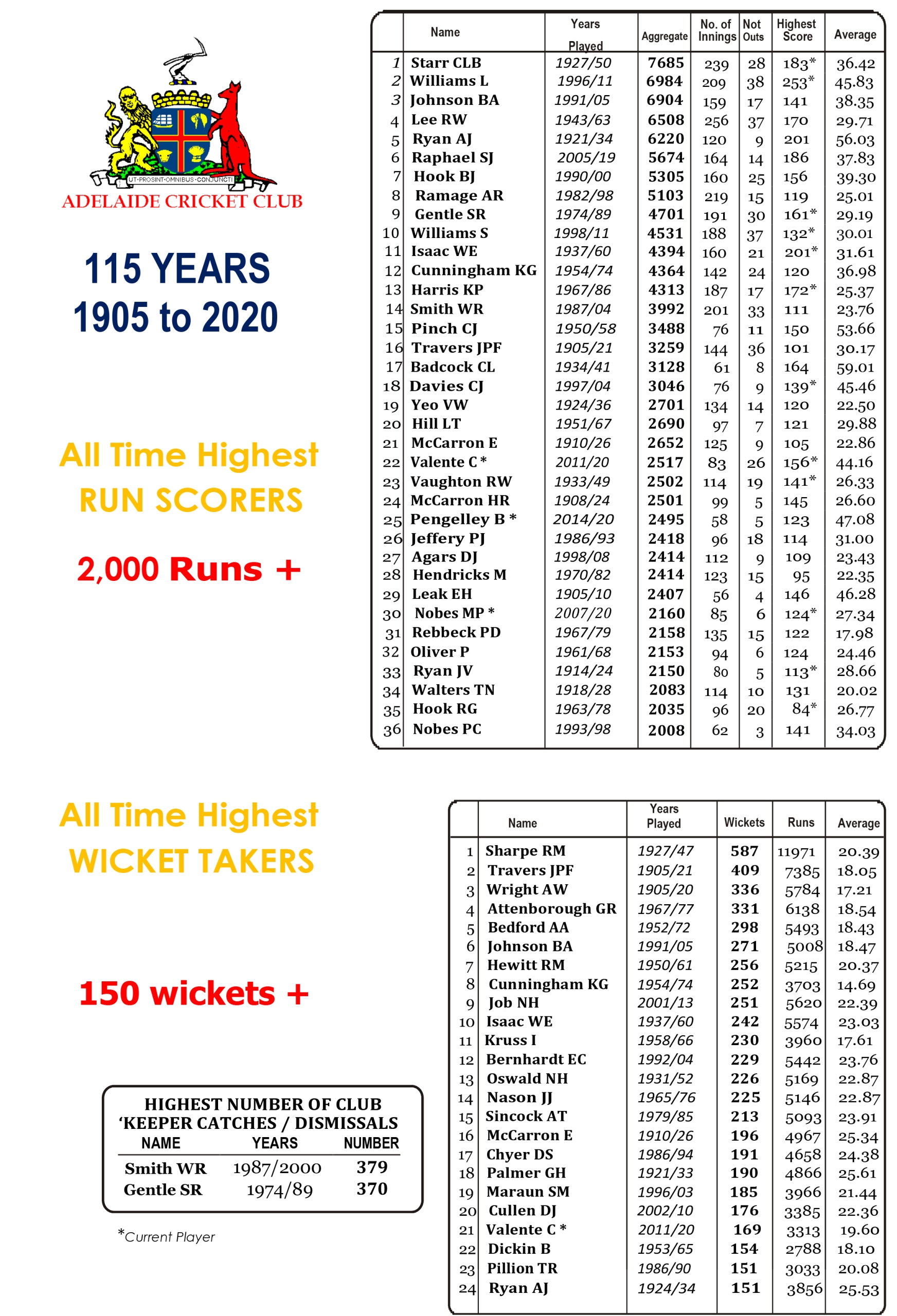 Over more than a century, Adelaide Cricket Club has produced and been home to a bevy of tremendous players who have produced remarkable careers. Many of those from recent decades have retired with playing careers that appear a very fair match for some of the greats of Adelaide’s earlier eras.